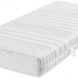 Vrlo dobra ventilacija, idealna temperaturna ravnoteža 4 kartice za prianjanje kao pomoć pri okretanju 2 različita stepena tvrdoće 7 ergonomskih zona po strani Meka strana: 2 cm komforna pjena + 4 cm gel pjena sa Podržavajući mleveni profil (tvrdoća razred 2- srednja, tjelesna težina do 110 kg) Čvrsta strana: 4 cm hladna pjena (tvrdoća 3 - čvrsta, tjelesna težina do 140 kg) Jezgra: 480 opruga / 2 m² 7 zona Duga trajnost zbog ojačanog džepnog oprugnog jezgra Visina: 12 cm Poklopac: 63% poliester i 37% lyocell (Tencelâ®) 140 g)bočni zatvarač Ukupna visina: 25 cm
