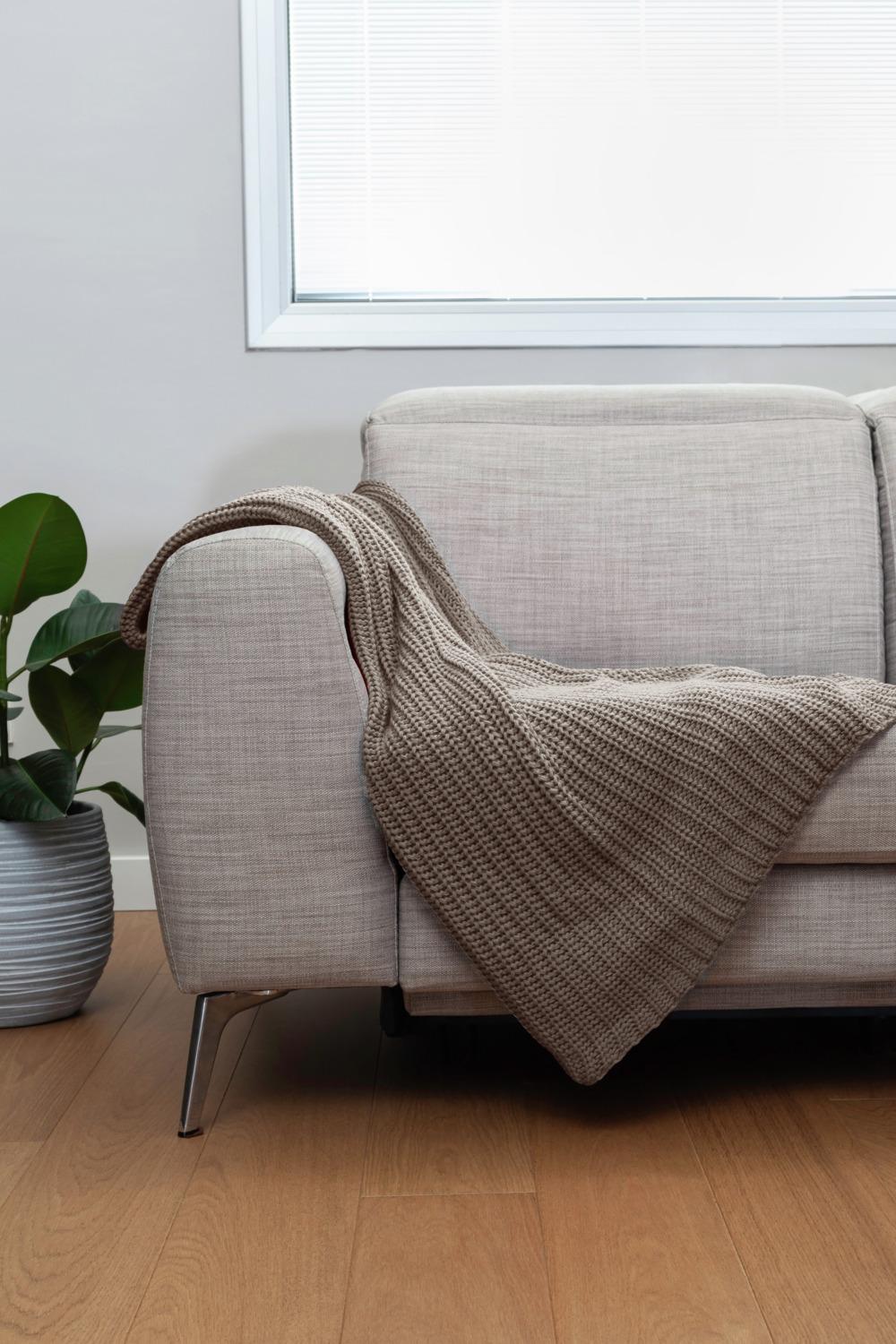 100% poliakril. Težina cca. 994 g/m². Udoban pleteni pokrivač — savršen za opuštanje. Pogodno za unutrašnju i vanjsku upotrebu. Izuzetno topao, reguliše temperaturu i lak za održavanje.
