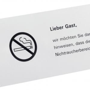 Za svestranu upotrebu u nepušačkim područjima. Ovaj displej je utisnut sa obe strane na 3 jezika (engleski/nemački/francuski).