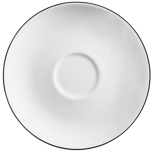 Atraktivna serija od bijelog porcelana sa ukrasnim crnim obodom.
