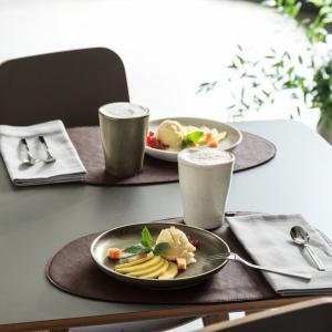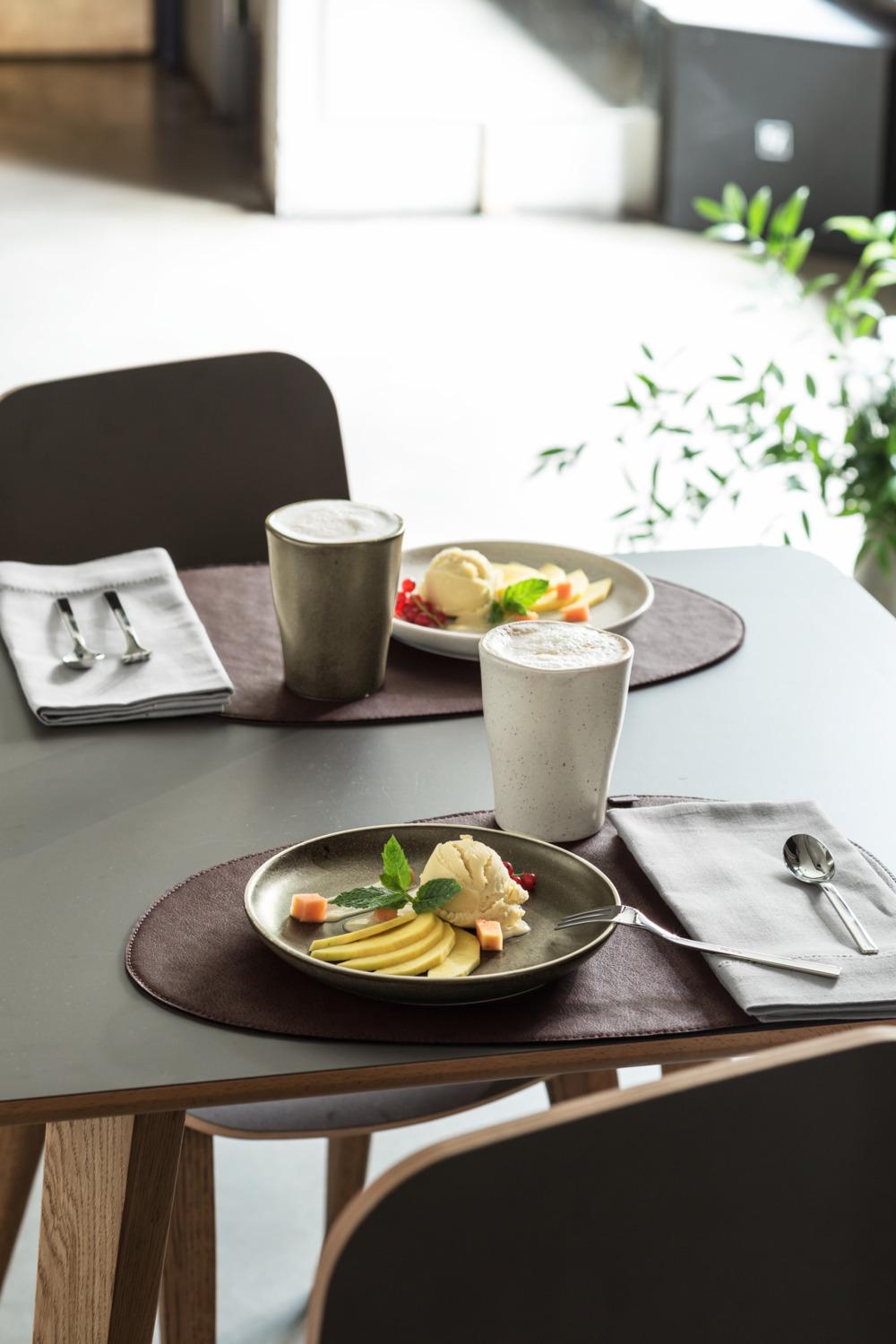 Divna pozornica za vašu hranu! Naša serija posuđa Ossora impresionira kvalitetom i dizajnom. Inspirisani prirodnim materijalima, ravni i duboki tanjiri, činije, i šolje izrađeni su od visokokvalitetnog zemljanog posuđa (kamenina). Može se prati u mašini za suđe i može se koristiti u mikrotalasnoj pećnici.