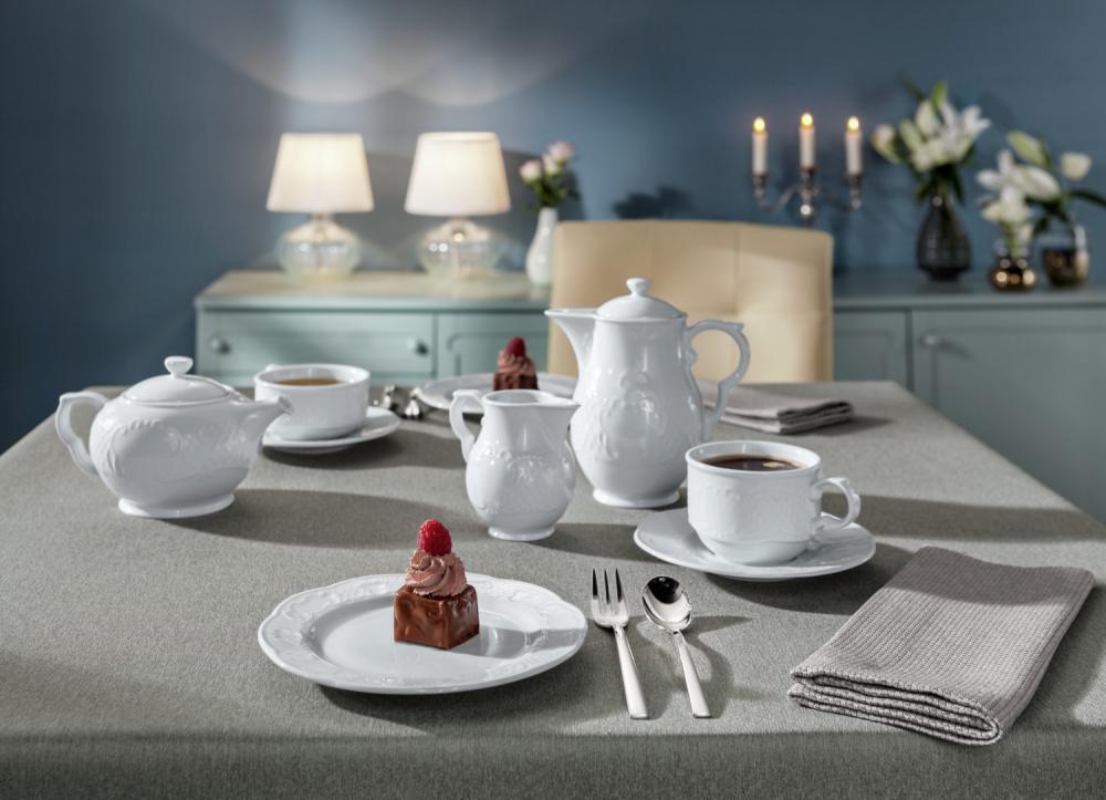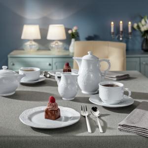 Uz našu atraktivnu hotelsku porcelansku seriju Menuett, vaši kulinarski delikatesi predstavljaju plemenit, lijep osjećaj zadovoljstva! A filigranski reljef savršeno naglašava klasično-tradicionalni stil vaše kuće. Može se prati u mašini za suđe i može se koristiti u mikrotalasnoj pećnici.