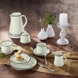 Jug sa retro dizajnom. Sa malim čipovima na felgama i spoljnim površinama kako bi se naglasio vintage dizajn stolnog posuđa. Materijal: porcelan. Mašina za pranje sudova bezbedna i bezbedna za mikrotalasnu!