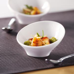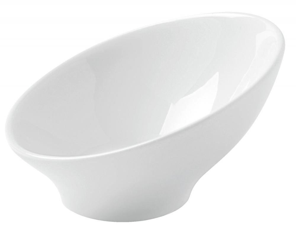 Okrugla mini zdjela u elegantnom dizajnu. U neobičnom, zakrivljenom obliku. Idealno za posluživanje malih jela. Čvrsti hotelski porcelan odličnog kvaliteta. Može se prati u mašini za suđe i može se koristiti u mikrotalasnoj pećnici.
