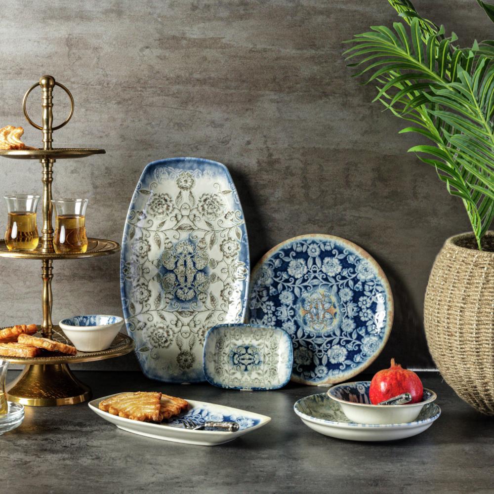 Šarena porculanska posuda sa vintage dekorom u digitalnoj štampi. Kvadratnog oblika. Može se prati u mašini za suđe i može se koristiti u mikrotalasnoj pećnici.