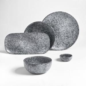 Tanjir napravljen od visokokvalitetne kamene keramike. Serija posuđa Mamoro oduševljava svojim izgledom prirodnog, crnog i bijelog kamena i divno se uklapa u rustičan ili starinski ambijent. Sastoji se od ravnih i dubokih tanjira, činija u nekoliko veličina i pravougaonih tanjira, tako da se sve savršeno uklapa. Može se prati u mašini za suđe i može se koristiti u mikrotalasnoj pećnici.