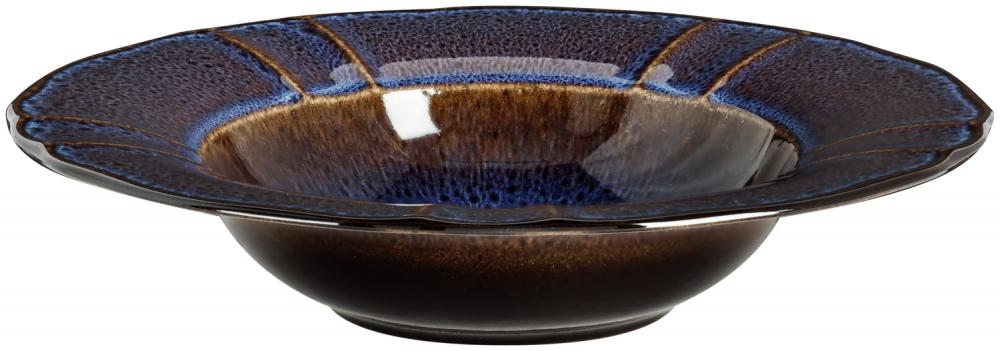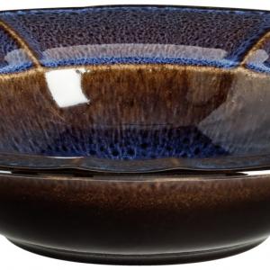 Šarena porcelanska ploča okruglog oblika. Diskretni reljef i razigrani ukrasni rubovi daju nostalgičnu notu. Jedinstven zahvaljujući reaktivnoj glazuri. Svaki komad je jedinstven. Boje mogu varirati od svetle do tamne. Može se prati u mašini za sudove i može se koristiti u mikrotalasnoj pećnici.