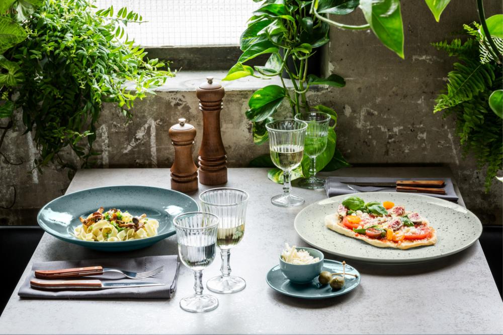 Obojeni porcelanski tanjiri za picu sa nepravilnim mrljama. Može se prati u mašini za suđe i može se koristiti u mikrotalasnoj pećnici.