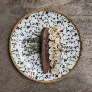 Tanjir u boji s trendi dizajnu. Pogodno za mašinu za pranje sudova i za mikrotalasnu.
