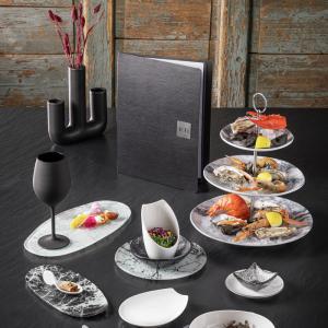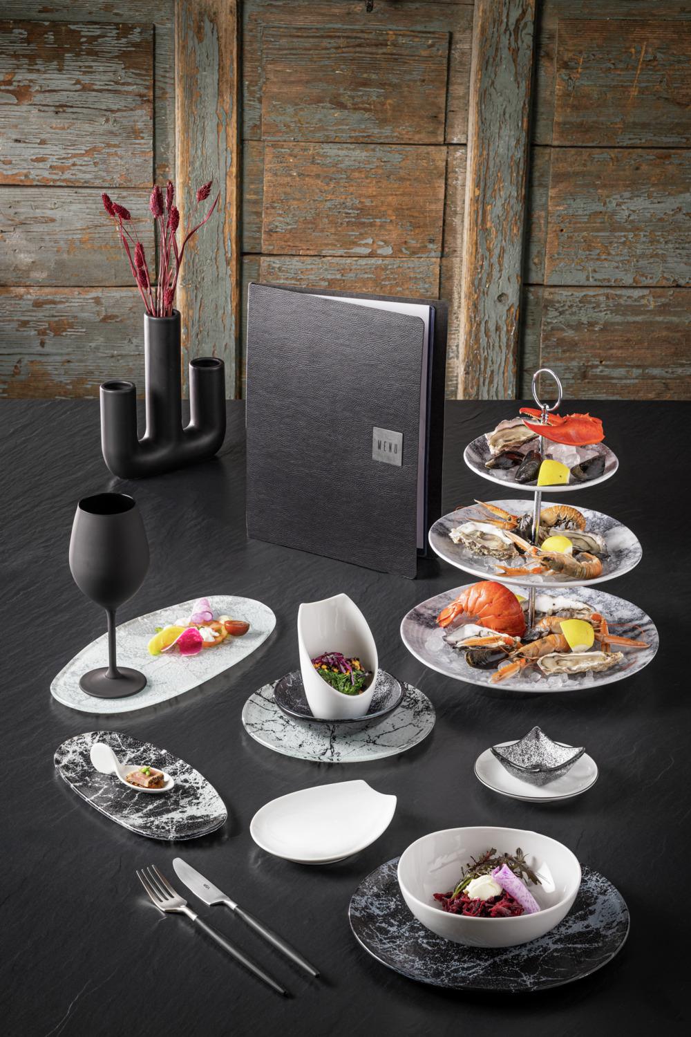 Plate in marbled look. Dishwasher safe.