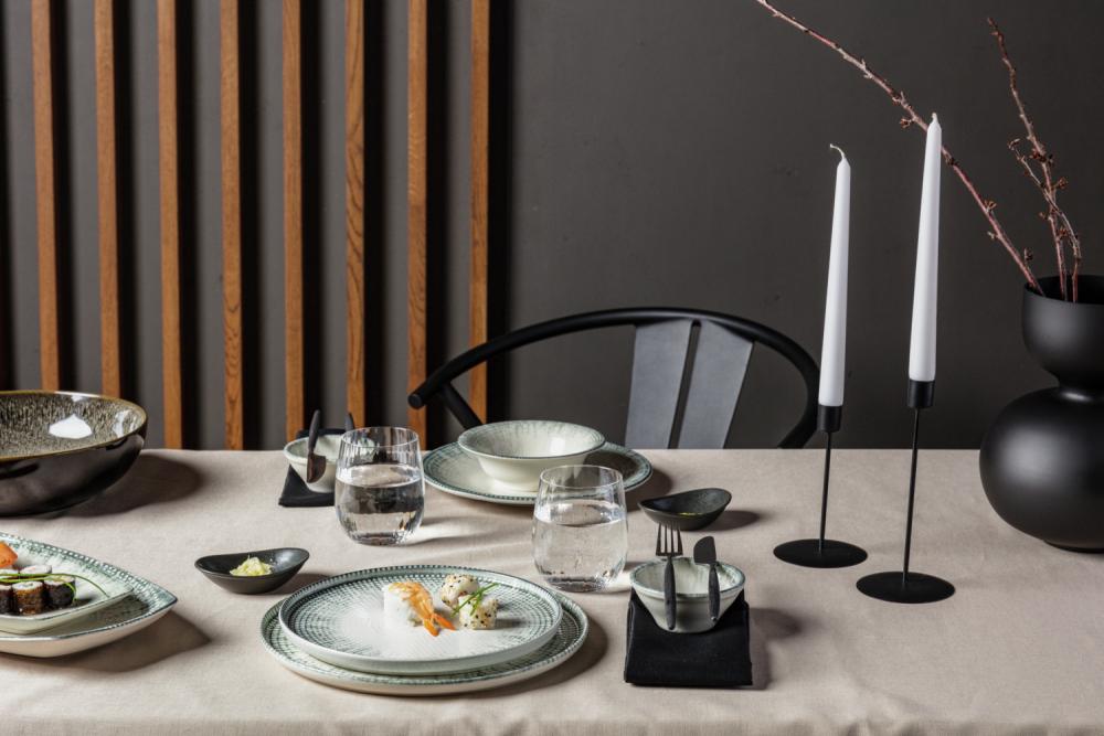 Obojeni porculan serije Kuori, uključujući zdjele, ravne tanjure i duboke tanjure.