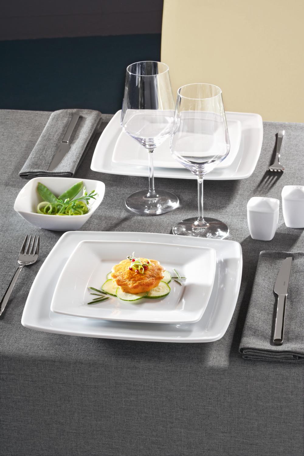 Moderna hotelska serija porculana Melbourne impresionira svojim ravnim, jednostavnim dizajnom, koja vašim dekoracijama hrane nudi izdašnu pozornicu. Može se prati u mašini za suđe i može se koristiti u mikrotalasnoj pećnici!