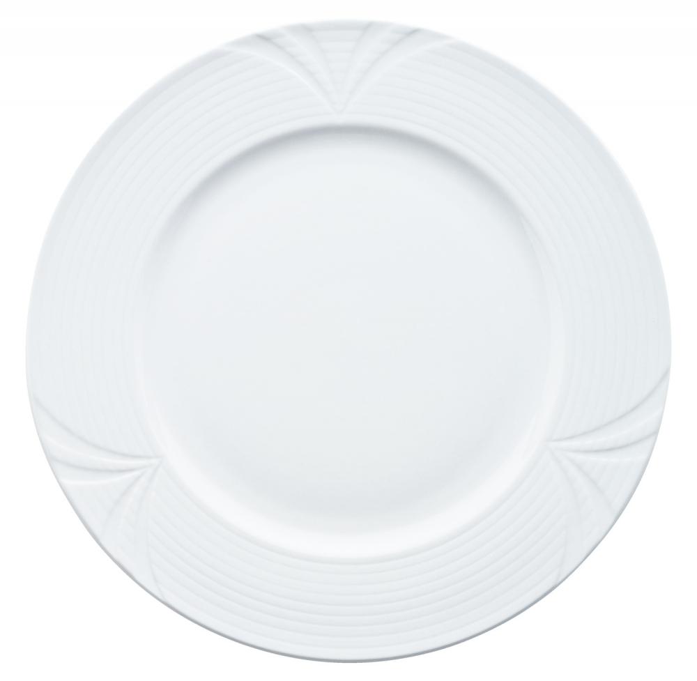 Elegantno posuđe napravljeno od bijelog hotelskog porcelana. Sa finim reljefom na rubu. Može se prati u mašini za suđe i može se koristiti u mikrotalasnoj pećnici.