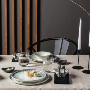 Obojeni porculan serije Kuori, koji se sastoji od činija, tanjira ravnih i tanjira dubokih. Može se koristiti u mikrotalasnoj pećnici i može se prati u mašini za suđe.