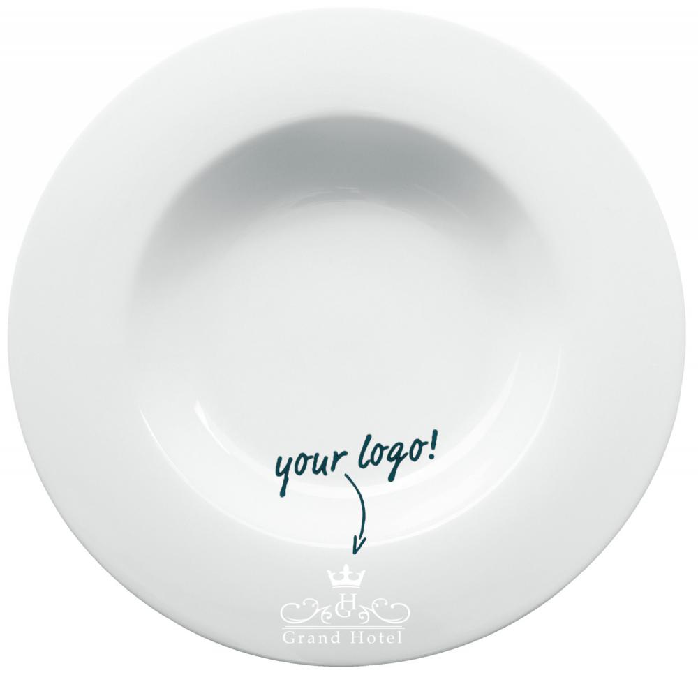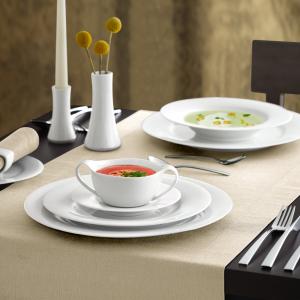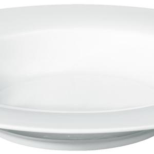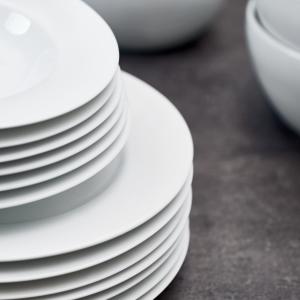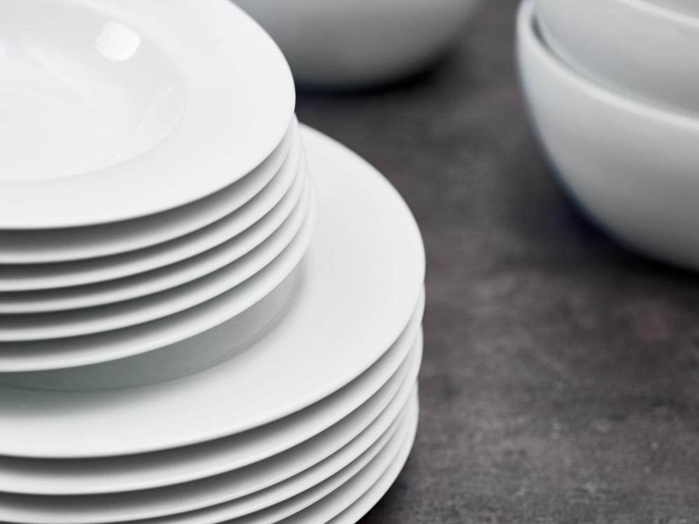 Bijeli tanjir napravljen od porcelana. Može se prati u mašini za suđe i može se koristiti u mikrotalasnoj pećnici!