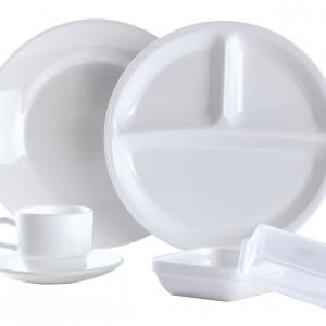 Tanjir napravljen od kaljenog stakla. Otporan na udarce i neosetljiv na ogrebotine. Može se prati u mašini za suđe i može se koristiti u mikrotalasnoj pećnici.