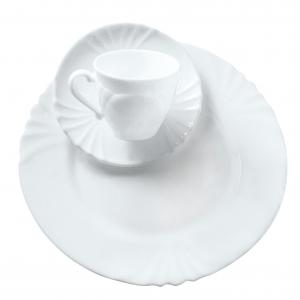 Predivno posuđe napravljenood kaljenog stakla, otporno na udarce. Sa diskretnim reljefom na obodu. Može se prati u mašini za suđe i može se koristiti u mikrotalasnoj pećnici.