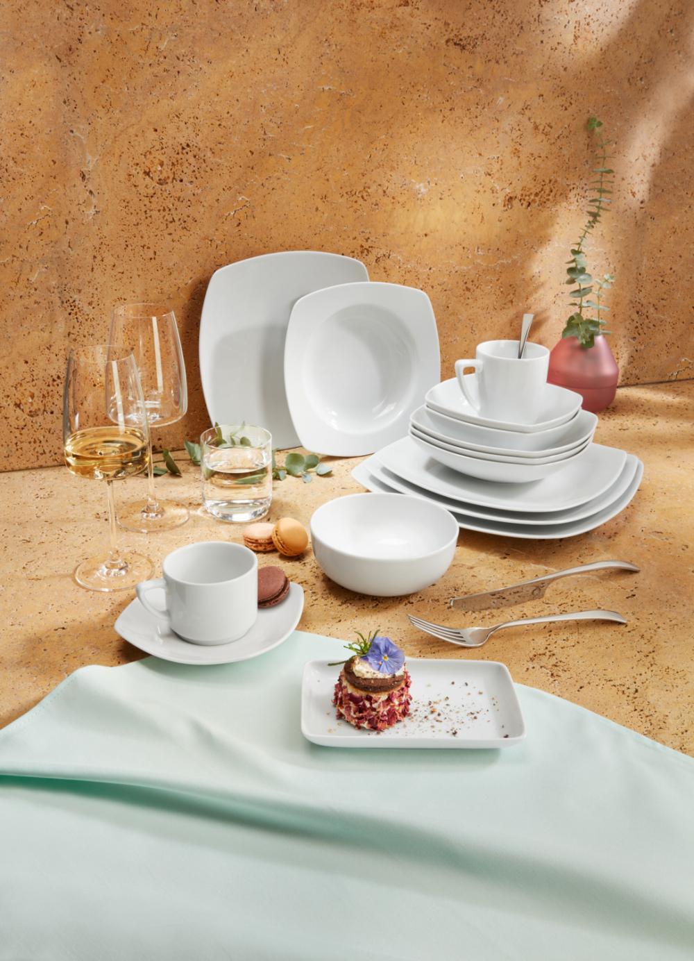 Idealan je za azijske, mediteranske i orijentalne kreacije. Jednostavan, ali elegantan kvadratni oblik takođe pruža nacionalnoj kuhinji višestranu platformu za predstavljanje vaših kreacija hrane. Može se prati u mašini za suđe i može se koristiti u mikrotalasnoj pećnici.
