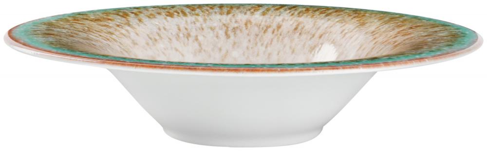 Colored pasta plate made of porcelain with digital print. Dishwasher safe and microwaveable.