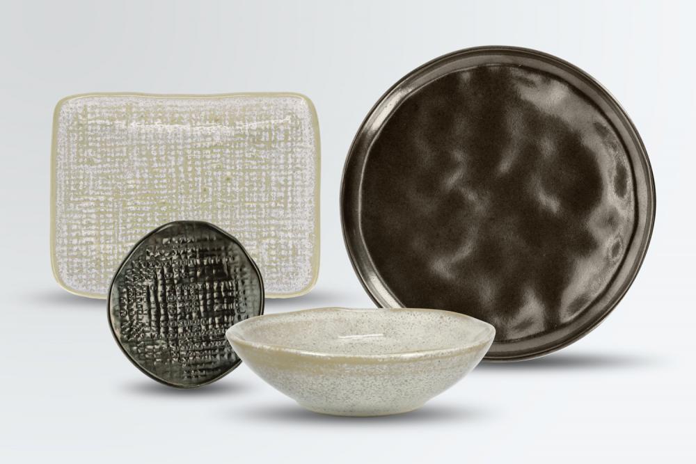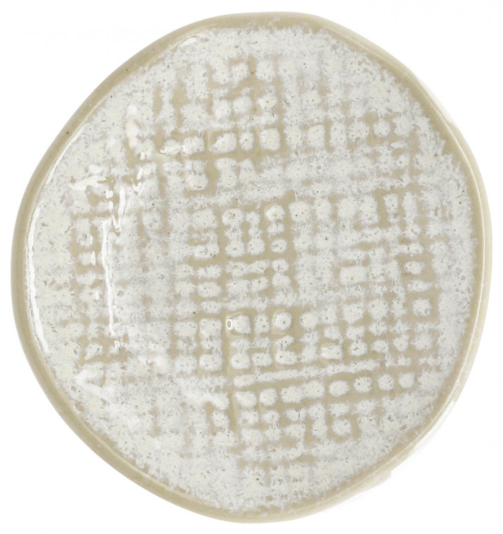 Colored stoneware plate with a special metallic glaze and textured finish. Each piece is unique. Dishwasher safe and microwaveable.