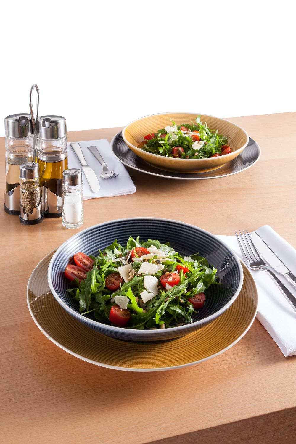 Serija glaziranog kamena sa spiralnom strukturom boja. Zemljano posuđe izgleda kao keramika, ali ima karakteristike porcelana. Svi dijelovi se mogu kombinovati jedni sa drugima. Može se prati u mašini za suđe i može se koristiti u mikrotalasnoj pećnici.