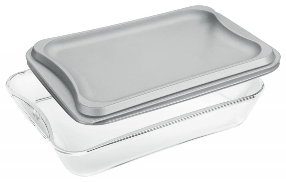 Visoko kvalitetna posuda za pečenje napravljena od stakla, sa 2 u 1 funkciji. Jelo ima kapacitet od 3,5 litara. Praktičan plastični poklopac čini ovo jelo za pečenje i pečenje pravim hitom - transport ili skladištenje hrane nije problem sa njim.