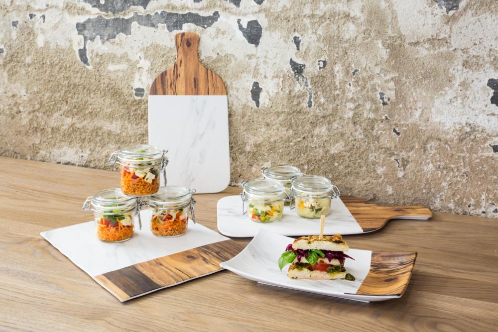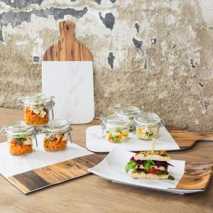 Serija napravljena od melamina u izgledu drveta. Izdržljiv zbog otpornosti na udarce i lomljenje. Opseg primene između -30 °C i +70 °C. Materijal: melamin.