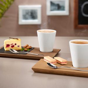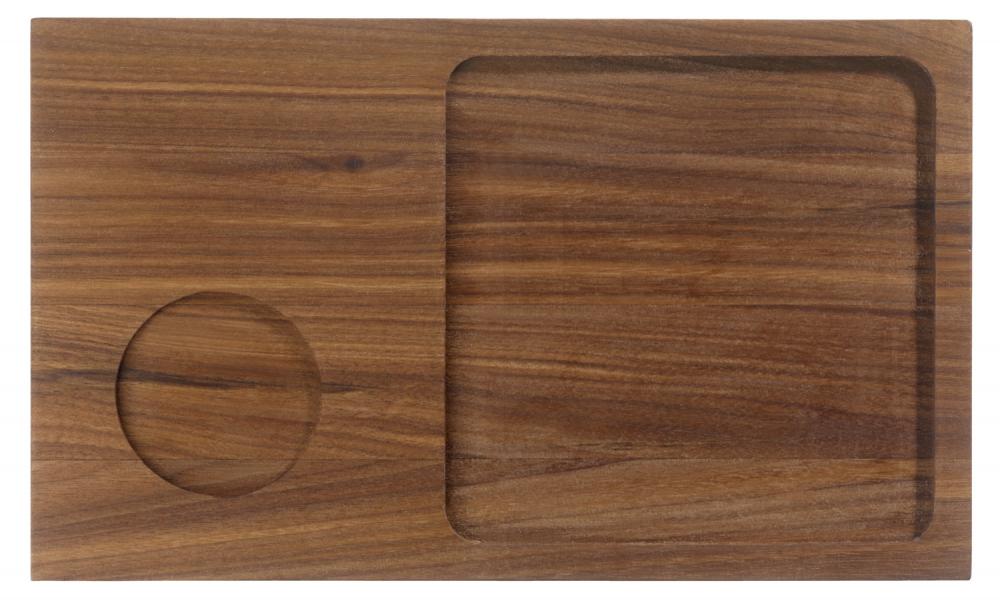 Uz kombinaciju pravog drveta, porcelana i škriljevca, uvijek ste u trendu: poslužite gostima fine detalje na visokokvalitetnim tanjirima od punog, nauljenog oraha ili hrasta. U okrugli profil (├y 5,4 cm) savršeno se uklapaju šolje kao i eksponati serija SINERGIE, CONTRAST i SAMOS. U kvadratni profil možete umetnuti tanjir od prirodnog škriljevca i savršeno predstaviti svoju hranu. Rešetkasti tanjir treba s vremena na vrijeme ispolirati maslinovim uljem, kako bi zadržao plemeniti sjaj. Drvo: nauljeno, nije pogodno za pranje u mašini za suđe! Uputstva za negu su uključena!