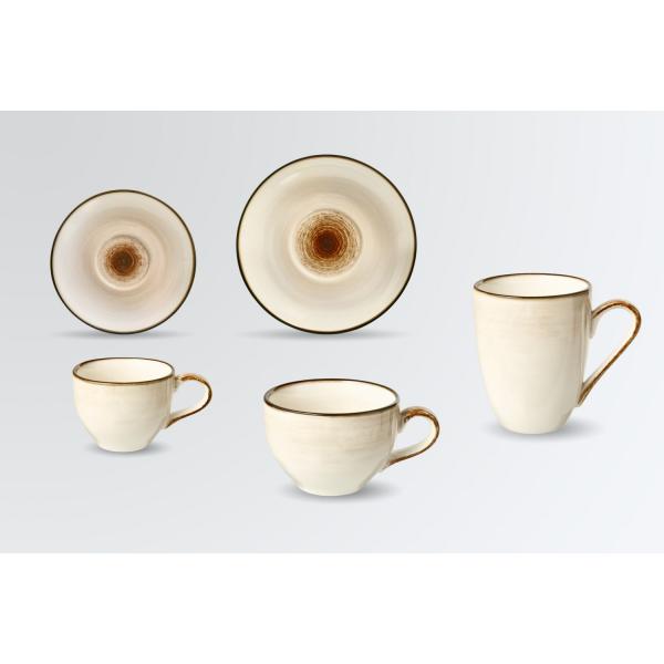 Set se sastoji od četiri šoljice za kafu 0,2 l, tanjira za šolju za kafu Ø 14 cm, espresso šoljica 0,09 l, tanjira za espresso šoljice Ø 11,5 cm i šoljica od 0,3 l svaka.