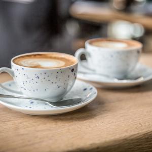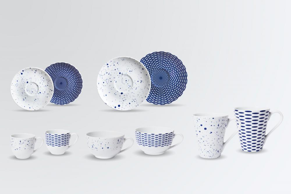 Set se sastoji od četiri šoljice za kafu 0,22 l, tanjira za šolju za kafu Ø 15 cm, espresso šoljica 0,1 l, tanjira za espreso šoljice Ø 12 cm i šoljica od 0,28 l svaka.