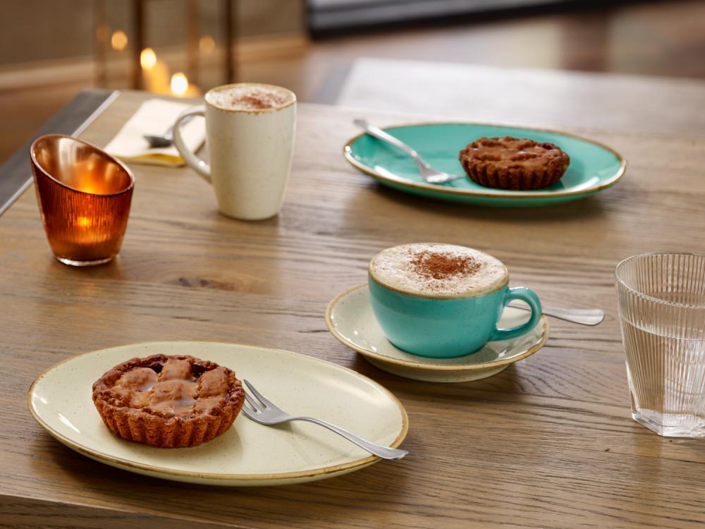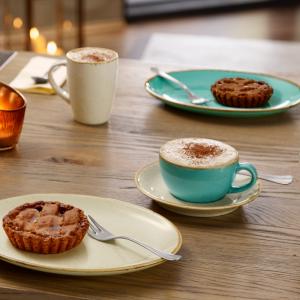 Set se sastoji od četiri šoljice za kafu od 0,2 l, tanjira za šolju za kafu Ø 16 cm i šoljica od 0,26 l svaka. Stolni pribor sa svojim nepravilnim ivicama daje individualni izgle ručno rađenog posuđa.
