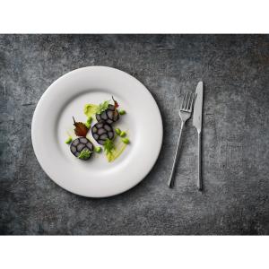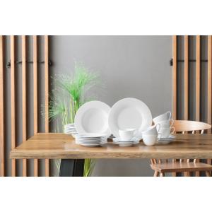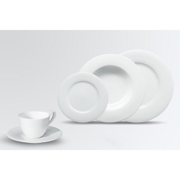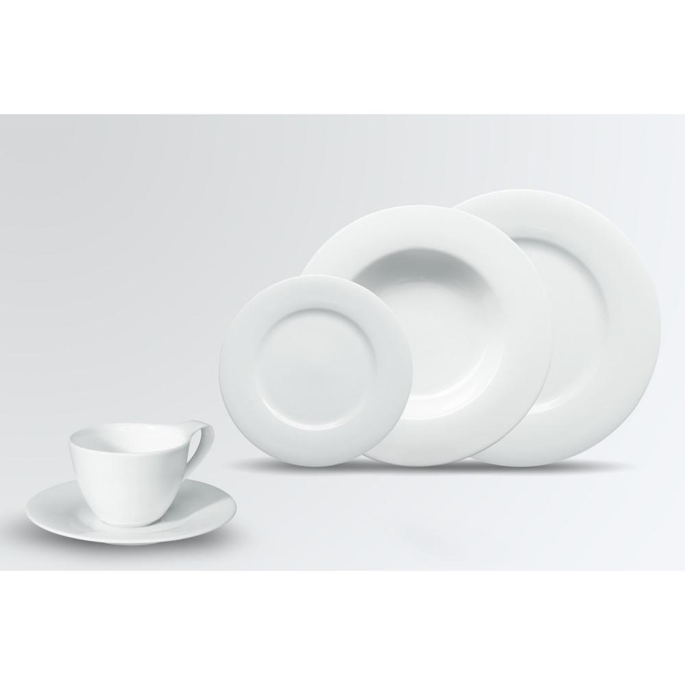 Set se sastoji od šest šoljica za kafu 0,2 l i tanjira za šolju za kafu Ø 15,5 cm, tanjira ravnih Ø 18 cm i 26 cm i tanjira dubokih Ø 24,5 cm. Visokokvalitetna serija sa zakrivljenom zastavicom tanjira i bešavnim prelazima ručke na šoljama.