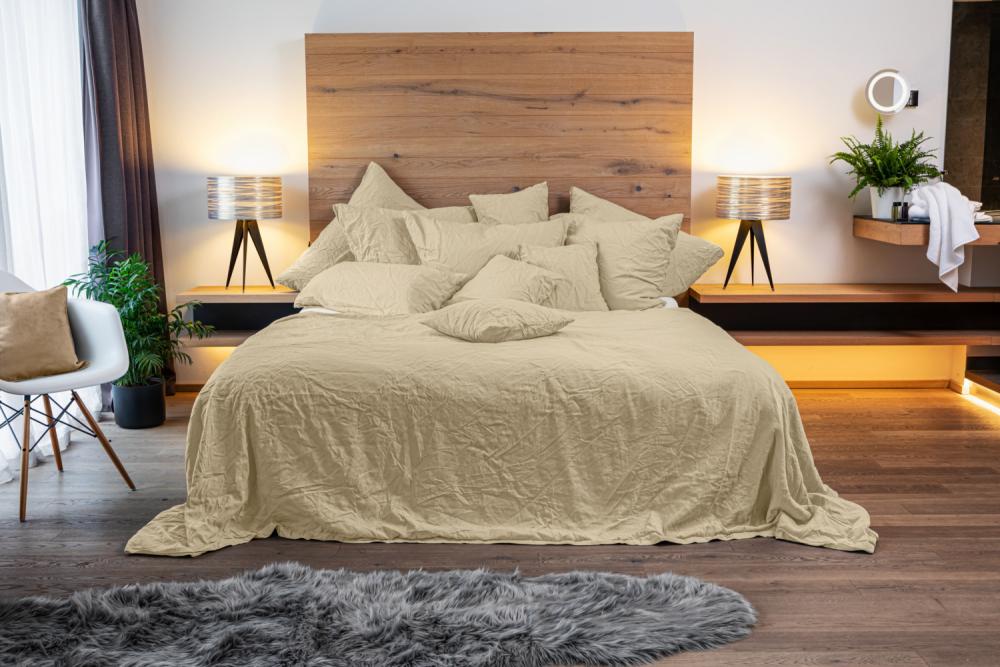 Dvorišni pribor za posteljinu za vaše pojedinačne veličine posteljine! U suptilnim bojama u optici sudara - nema potrebe za peglanjem! 55% lane, 45% pamuk. 60 ° C može se prati, ne otporan na hlor. Težina cca 135 g/m