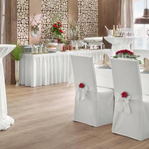 Weight of fitted table cover: 170 g/m². Weight of fitted chair cover: 240 g/m² |
