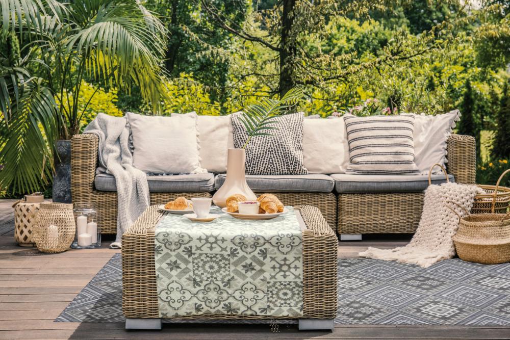 Može se koristiti i na balkonu ili u dvorištu. Materijal otporan na vjetar i vremenske uslove. Dostupan u 3 različite boje. Anti-slip donja strana. Materijal 100% poliester, može se prati na 40°C. Mrlje se odmah obrišu vlažnom krpom.