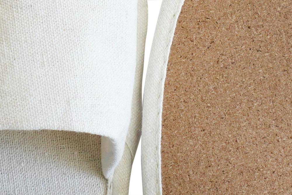 Papuče 100% bez plastike napravljene od prirodnih materijala: lana, plute i lanenih vlakana. Svaki par je pažljivo ručno izrađen bez upotrebe lepkova i sintetičkih punila. Robustan i neklizajući đon od plute. U ručno rađenim papučama se ne koriste lepkovi niti sintetička punila.