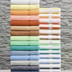 100% cotton. Vibrant colors: Wash at 60°C, not colorfast to chlorine (brown/white, dark blue/white, graphite/white). Other colors: Wash at 95°C, colorfast to chlorine. Weight approx. 460 g/m². Bath mat approx. 820 g/m². |