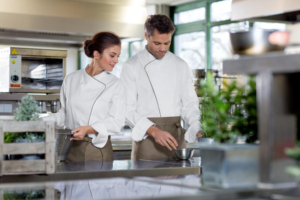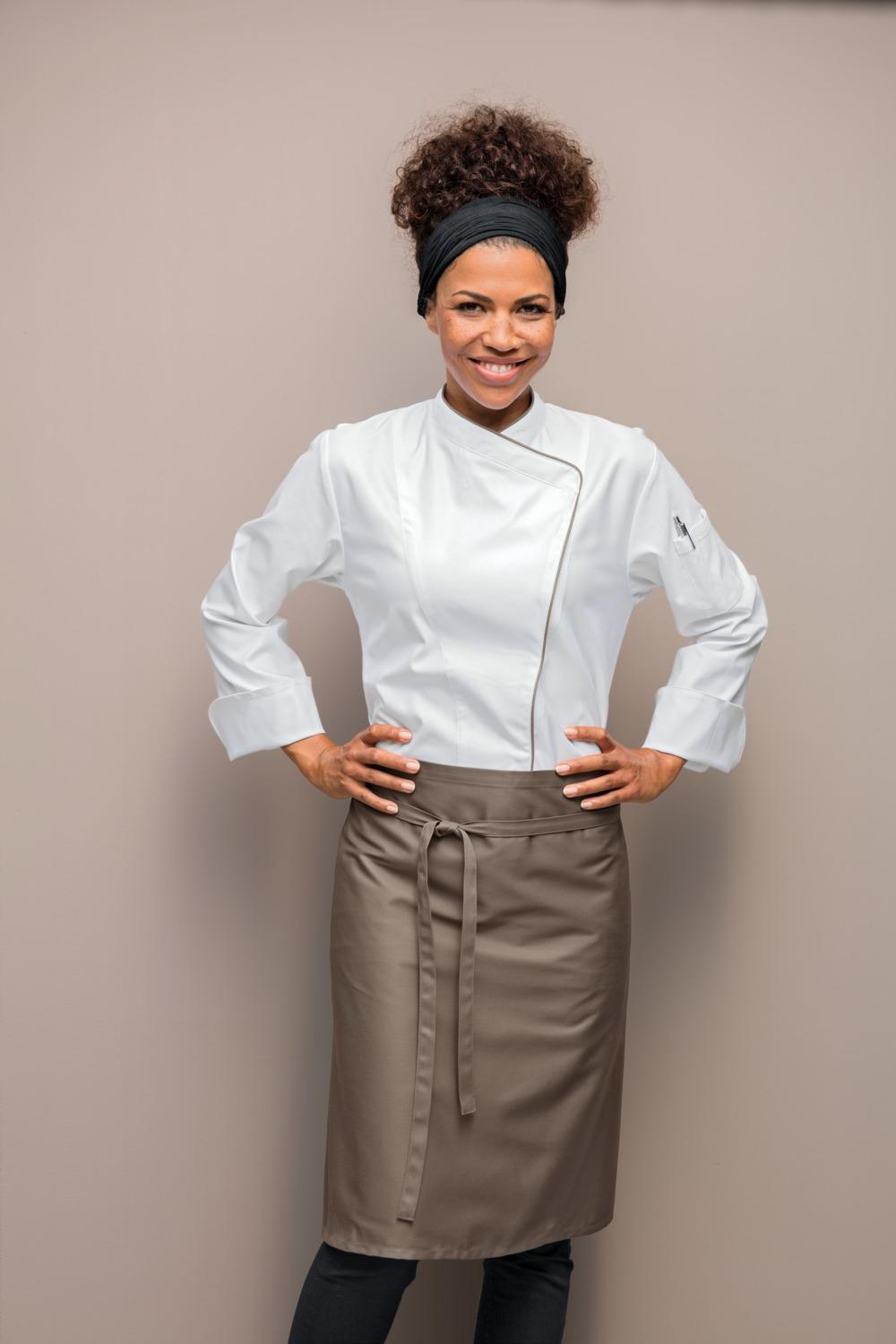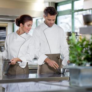 Kuvarska jakna za žene i muškarce, izrađena od visokokvalitetnog Tencel materijala, sa rastezljivim dijelom i zatvaranjem na dugme. Jakna ima hladan i gladak osjećaj na koži. 2-deljeni džep na rukavu na nadlaktici.