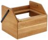 The Esino refrigerated display case consists of the medium base box made of oak wood, a base tray made of high-quality plastic with a heat resistance of up to 70°C, the matching polyethylene cold pack and the stackable 1/1 GN container made of 18/10 chrome-nickel stainless steel, rustproof, with a practical stacking cam, reinforced corners and edges and a liter scale. The GN container is dishwasher safe, all other parts are not. A matching roll-top hood, hygiene protection and labeling boards are available separately.
