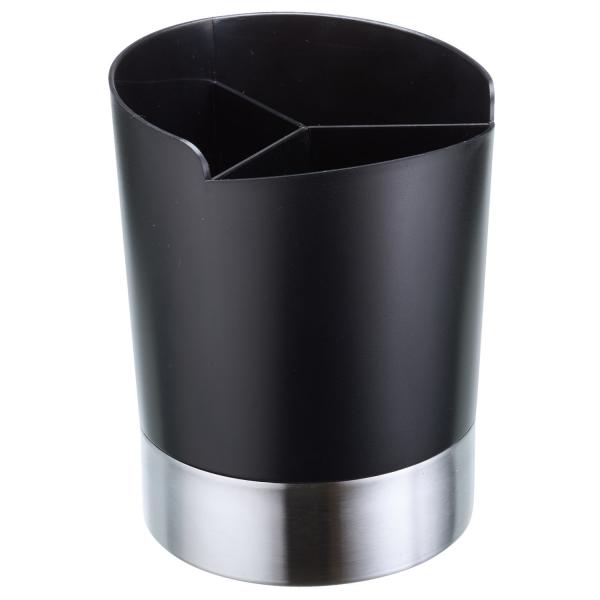 Modern cutlery container made of high quality plastic and bottom part made of stainless steel, rustproof. Subdivision into 3 compartments. Container and bottom part are stacked, ideal for separate cleaning, suitable for dishwashers.