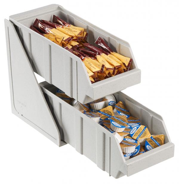 Set of 2 practical storage boxes and matching stand made of polypropylene for sorting, storage or presentation of cutlery, packed food or other utensils. Boxes are stackable and dishwasher safe. Stand including drill holes for wall mount. Dimensions stand LxWxH: 19,5x14,2x23,5 cm. Dimensions of box LxWxH: 31x12x10,5 cm.