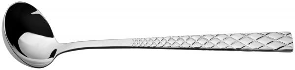 Ladle Brilio With the ladle Brilio the attention of your guests is safe. It impresses with the unique and extravagant design of its handle, which is embossed with a dominant diamond pattern that you can not only see but also feel. Due to the incorporated relief, the ladle lies well in the hand and looks in its overall appearance extremely exclusive. In addition to its eye-catching appearance scores the easy-care portion creator with a high-quality workmanship and withstood the demands of the gastronomic daily easily. * Portion Creator in an exclusive, stylish design * Exceptional appearance due to deeply embossed diamond pattern in the handle * pleasant to grip * noble shiny surface * highly polished * excellent workmanship and high quality * Cutlery in 18/10 chrome-nickel stainless steel * gastronomic material thickness 4.5 mm (measured at the strongest point) * robust, stainless and dishwasher safe * Can be combined with other elements of the Brilio cutlery series * 10 years availability guarantee The ladle Brilio is a real eye-catcher and finds a place on classic and modern tables. It does not miss the ladle of elegance, because thanks to high-gloss polish their surface appears in noble gloss. The practical attributes of the ladle are also impressive: it is made of durable, robust 18/10 chrome-nickel stainless steel, on which no rust can form, and can also be cleaned in the dishwasher. Accordingly, the ladle requires almost no care. It is part of the Brilio cutlery series and can therefore be combined with other components of the series.