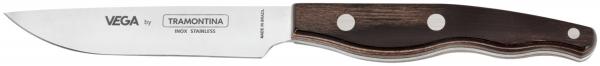 Chrome-stainless steel 13/0, rustproof. Real wood handle. Pizza/steak knife in the popular Tramontina design. Hard blade with durable handle and stainless steel rivets. Dishwasher safe.