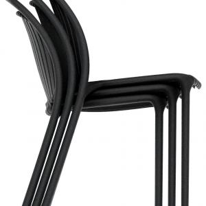 Contemporary plastic chair Stratos made of durable, glass fiber reinforced polypropylene, 100% recyclable. With its soft curves and timeless design, this chair is suitable for both outdoor and indoor spaces such as terraces, gardens or cozy interiors. The weather-resistant material and stackable design make the chair perfect for intensive use and easy storage when needed. An elegant and practical choice for any environment.
