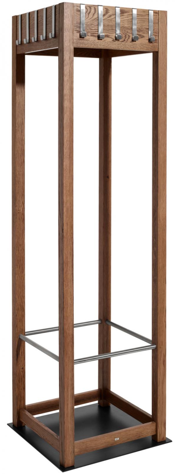 The coat rack Apendio is a first-class choice, if you value high-quality and a classic, timeless design in your ambience. Very stable and sturdy thanks to a steel base plate. A total of 20 hooks made of high-quality stainless steel offer plenty of space for the coat check of your guests. Even the struts that hold umbrellas are made of stainless steel. The combination of stainless steel and high-quality oak wood creates a charming contrast.