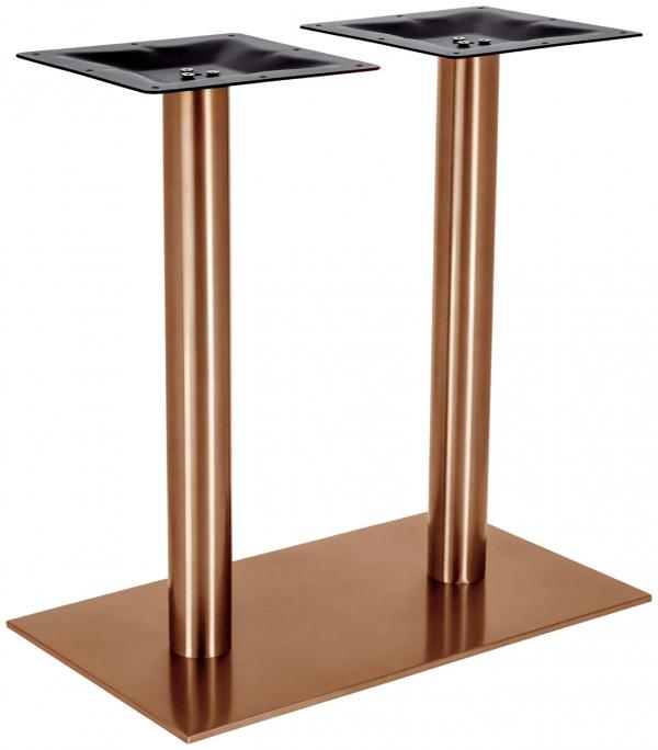 The double table bases Orio guarantee special attention! The bases are made of stainless steel and painted in the current trend colors copper or gold. They can be combined with all our table tops and promise you the greatest possible flexibility. With the help of the supplied fastening material, you mount the table bases Orio in the twinkling of an eye on the table tops of your choice and thus get with little effort a very individual furnishing. * Modern table base * Base made of stainless steel, painted in the trendy colors copper or gold * With adjusting screws to compensate for uneven floors * For indoor use * Great combination possibilities with numerous table tops * Meets the requirements for stability and tilt resistance, provided that recommended table top sizes are used * Is delivered disassembled, easy assembly * Mounting material for table tops is included Practical: The table bases have adjusting screws to compensate for uneven floors. Absolute stability and tilt resistance is guaranteed if you observe the specified maximum dimensions for table tops. The base for tables is supplied in individual parts, but is uncomplicated to assemble and easy to attach to the table top.