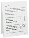 Made of carton. Both sides are imprinted in 4 languages (EN/DE/FR/ES - PLEASE DO NOT DISTURB/PLEASE CLEAN UP MY ROOM). Available in 2 different formats and designs, fitting the style of your house.