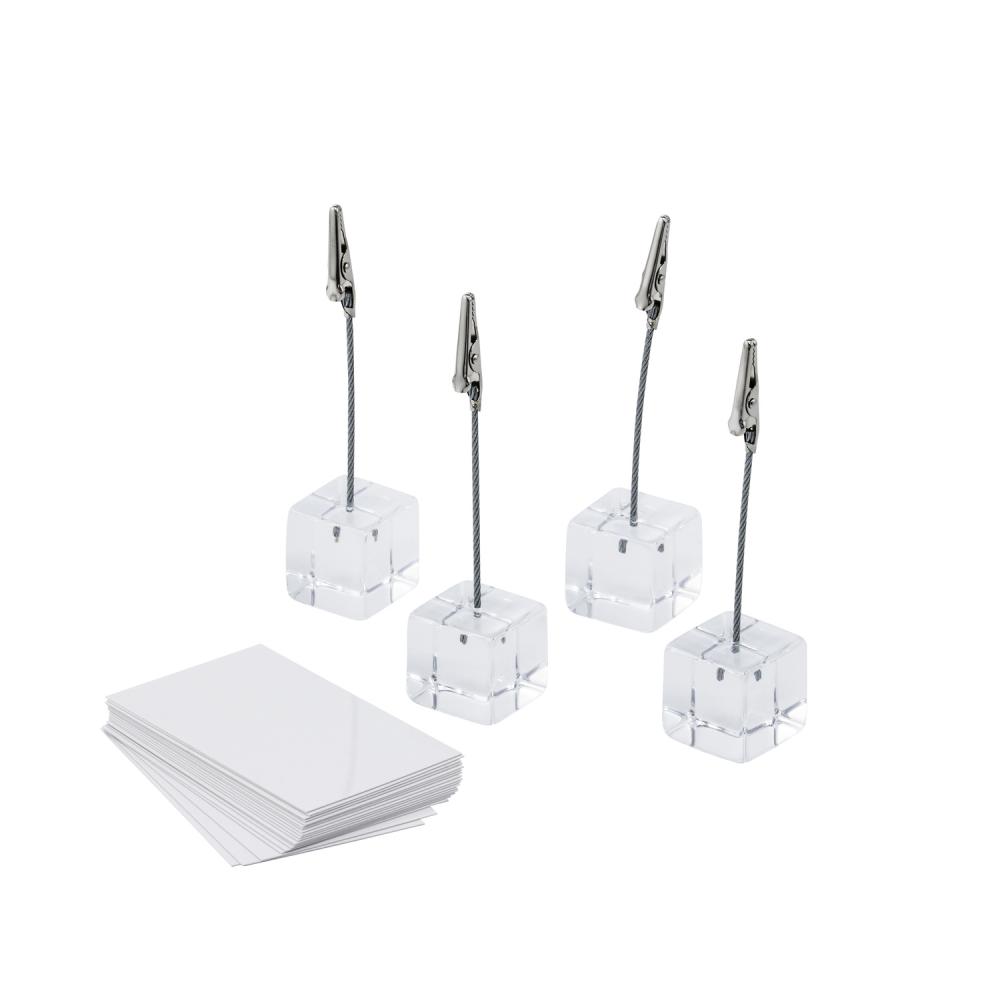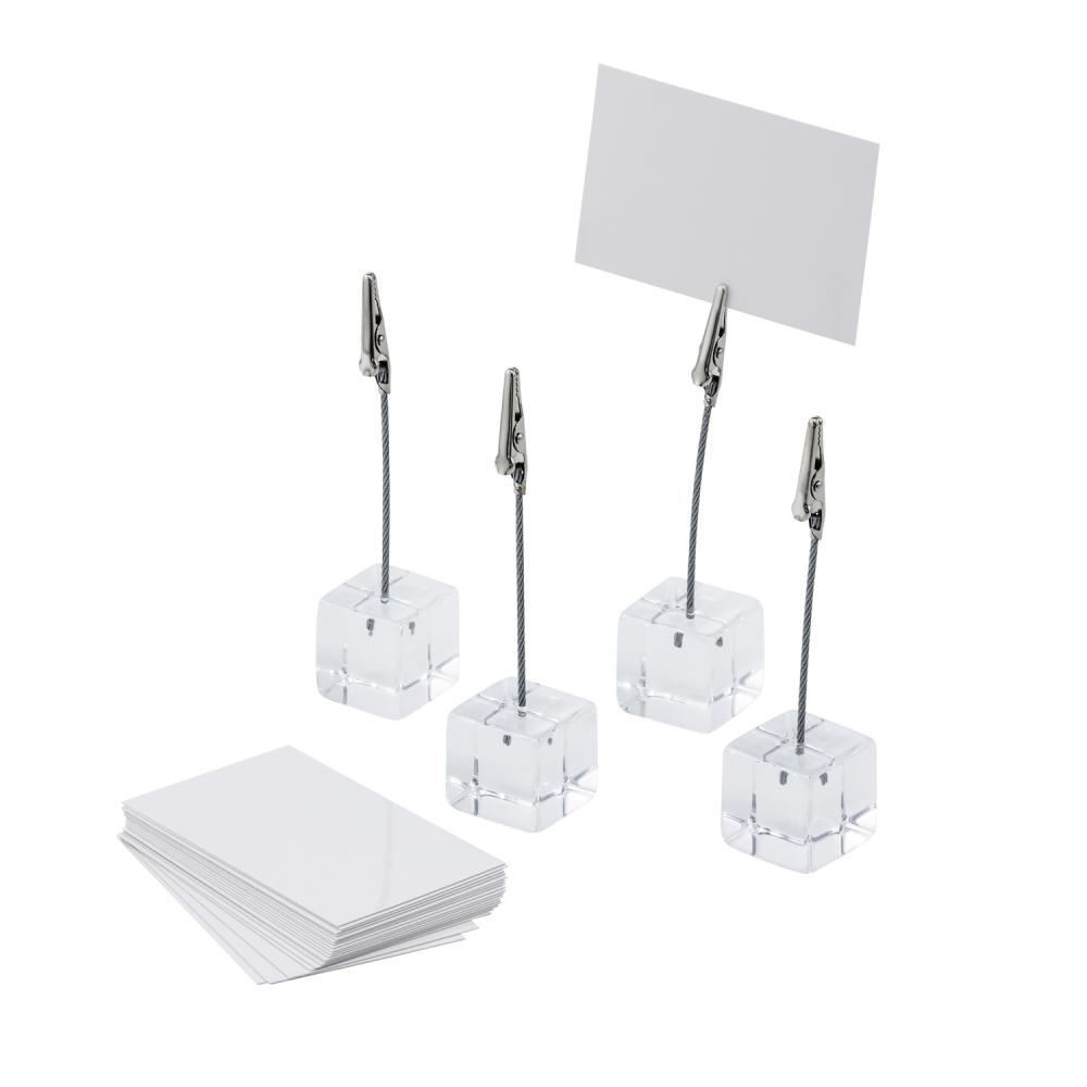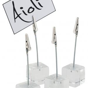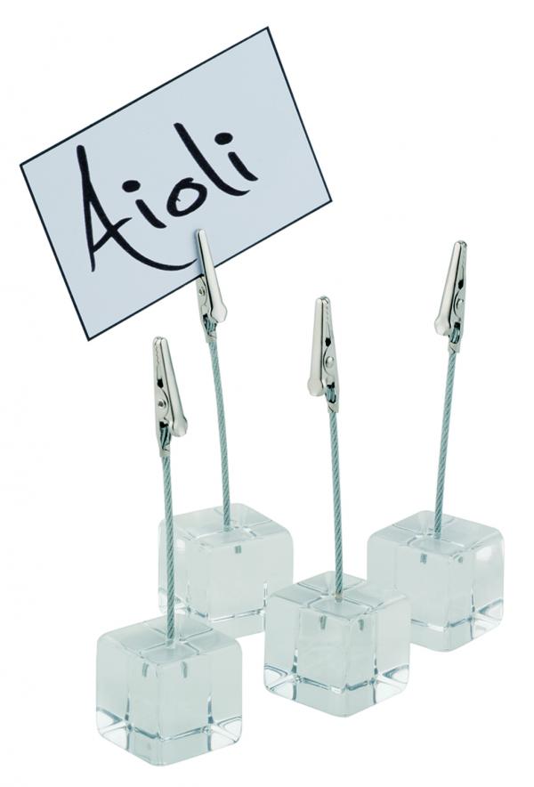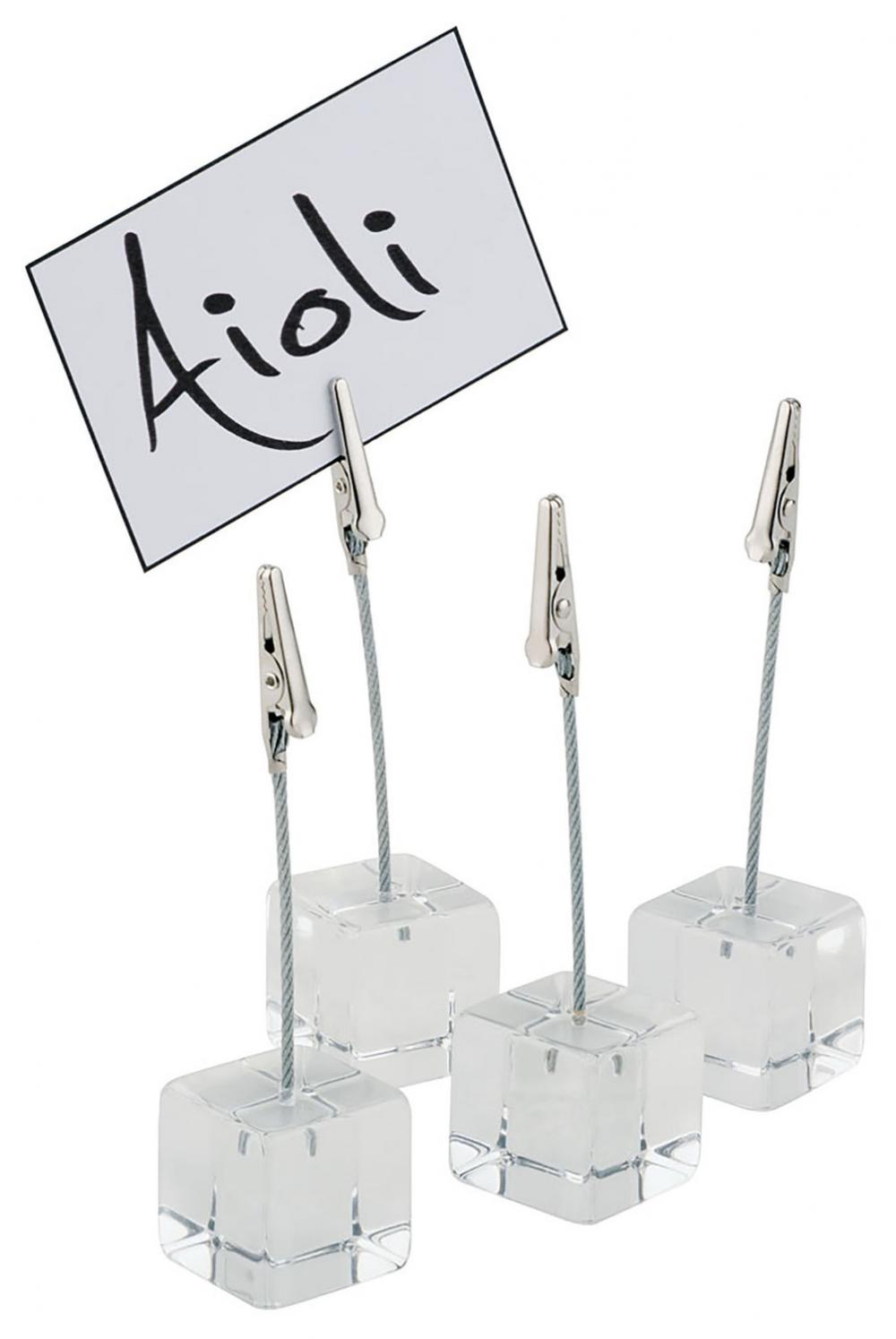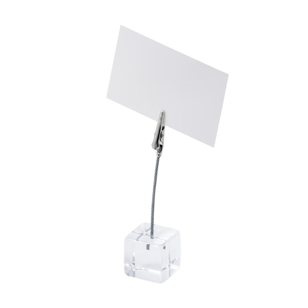 Incl. white labelling cards. The card holder from APS has a small wooden cube as a base and an acrylic bar with clip as a way of presenting small labelling cards.