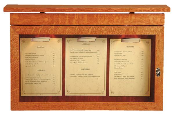 ATTENTION! This is indicated by the illuminated menu boxes made of wood, which put your offers in the right limelight in different shapes, colors and sizes. Incl. fastening material, cable (length 2 m), plug and key. Supply including energy efficiency class B lamps for 15 W Article and A for 18 W. Suitable for protected outdoor areas!