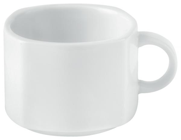 Stylish crockery made of white hotel porcelain, in a modern square shape. Particularly stable due to extra robust glaze. With a smooth rim. The rim width is approx. 3,3 cm. All parts of the series except sugar bowl and milk jug are stackable, microwaveable and dishwasher safe. Weight plate Ø 19 cm approx. 411 g. Please note the value packs "Coffee" and "Dinner".